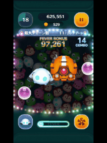 より多く消すために、周りのボムから消したくなりますが、スキルのエフェクト後すぐに特大ボムを壊すとツムを多く消せます。