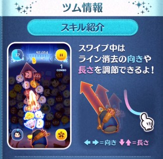 悪だくみガストンのスキルですが、「画面スワイプでライン状にツムを消すよ!」になってます。