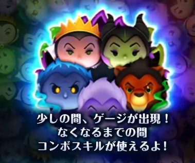 ディズニーヴィランズ(セット)のスキルですが、「少しの間、ゲージが出現!なくなるまでの間コンボスキルが使えるよ!」になってます。