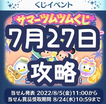 サマーツムツムくじ2022の7月27日版のミッション攻略やオススメツムなどをご紹介します。