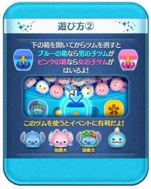 箱が空いているときに青箱なら男の子ツムのみカウント、ピンク箱なら女の子ツムのみカウントになります。