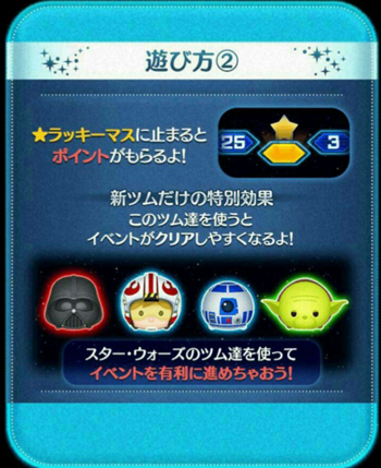 ルーク、R2-D2、ヨーダ、ダースベイダーのツムを持っている場合、より多くポイントを獲得出来ます。