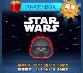 ツムツムの2015年12月ですが、追加ツムとして「ダースベイダー」が追加されました!待ってました!!って感じですが、早速、プレミアムBOXに挑戦して確率などを検証していこうと思います。